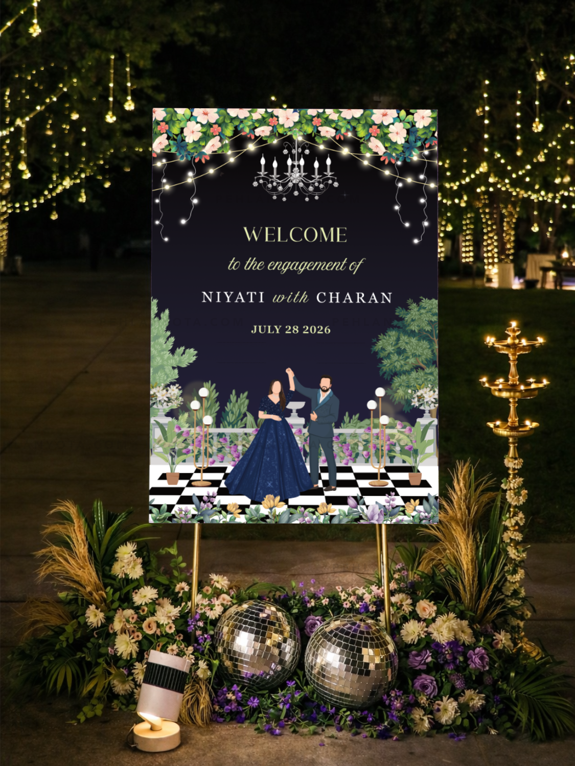 Welcome Board 019 | Wedding Welcome Board Event Sign for Engagement, Sangeet, Reception